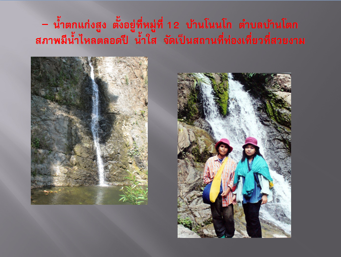 | - น้ำตกแก่งสูง เป็นน้ำตกที่สูงประมาณ 100 เมตร น้ำใสสะอาดสวยงามมาก ตั้งอยู่ บ้านโนนโก หมู่ที่ 12 ห่างจากถนนสระบุรี - หล่มสัก หมายเลข 21 ประมาณ 13 กม. | |||||||||